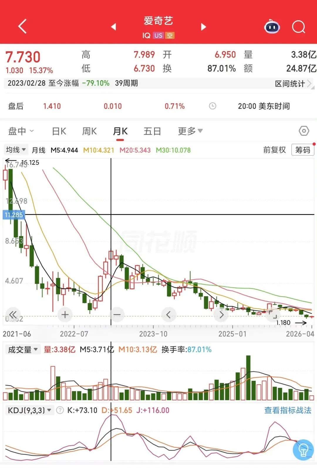 编剧阿金看到#爱奇艺股价从46美元跌到1.4美元#话题词时,内心了然。