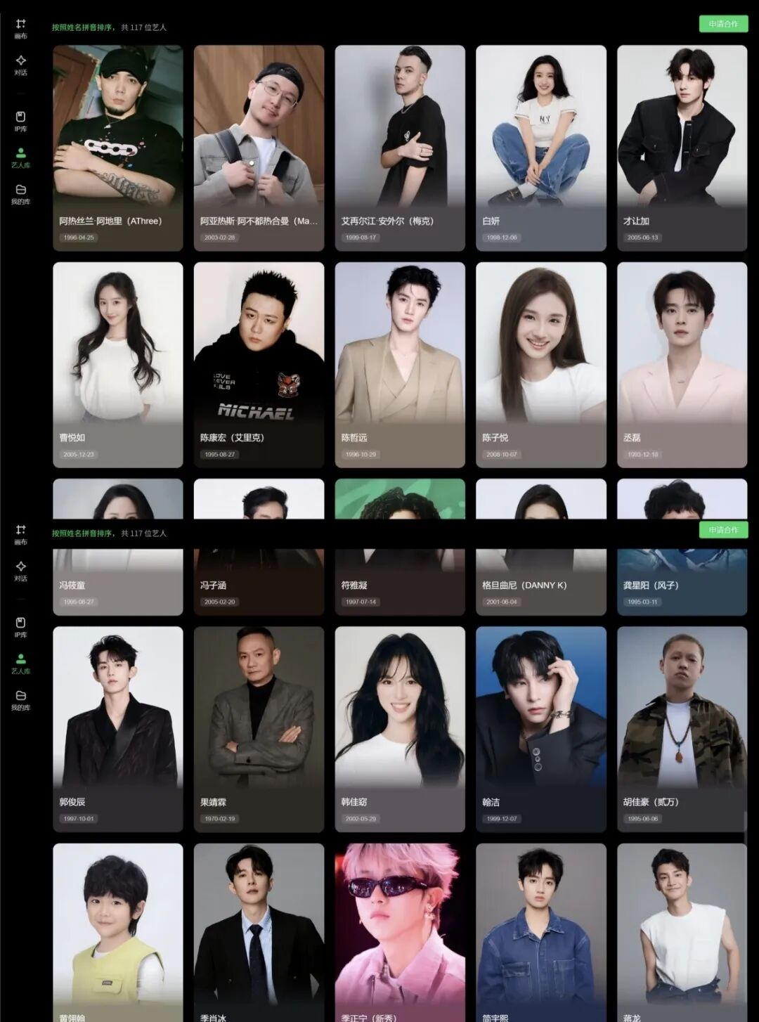 戈戈的公司,正在孵化一款通过AI链接艺人和粉丝互动的APP,据她长期沟通艺人的反馈来看:对AI持包容和接受态度的艺人,不到10%。“我们聊了百八十个艺人,能有六七个觉得这事OK的,就算不错了。”这其中,接受度最高的还是有互联网大厂基因的经纪团队,由于平台侧长期积极的渗透,他们比传统影视赛道的艺人更能接受“AI化运作”这个理念。