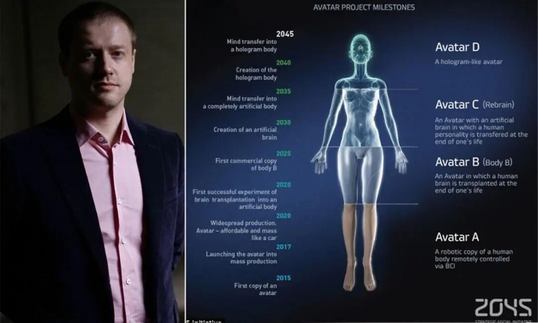 俄罗斯企业家伊茨科夫,曾经搞了个“2045计划”,路子也挺野。